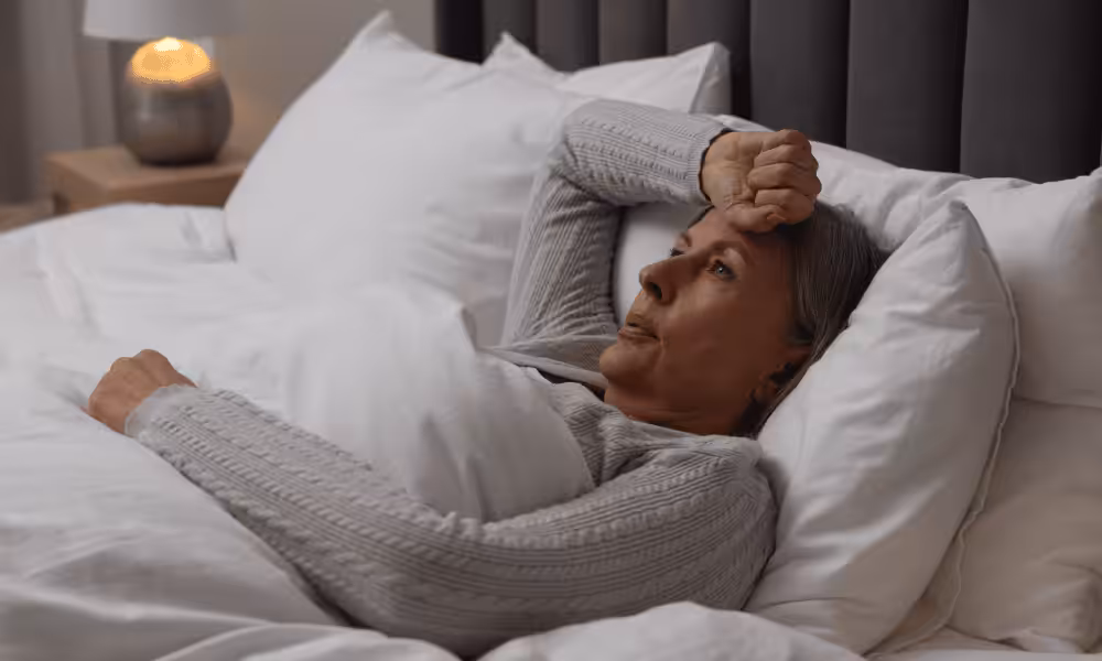 La ménopause s’accompagne souvent de bouffées de chaleur ou de sueurs, plutôt nocturnes. Il s’agit d’une hypersudation (transpiration excessive), qui intervient plutôt la nuit et sans raison apparente. Ce symptôme va généralement de pair avec des troubles anxieux et des crises d’angoisse. Cet état de stress peut aussi perturber votre sommeil, accentué en période de ménopause par la baisse de mélatonine, l’hormone du sommeil. Vous pouvez alors être confrontée à des insomnies régulières pendant la ménopause.
