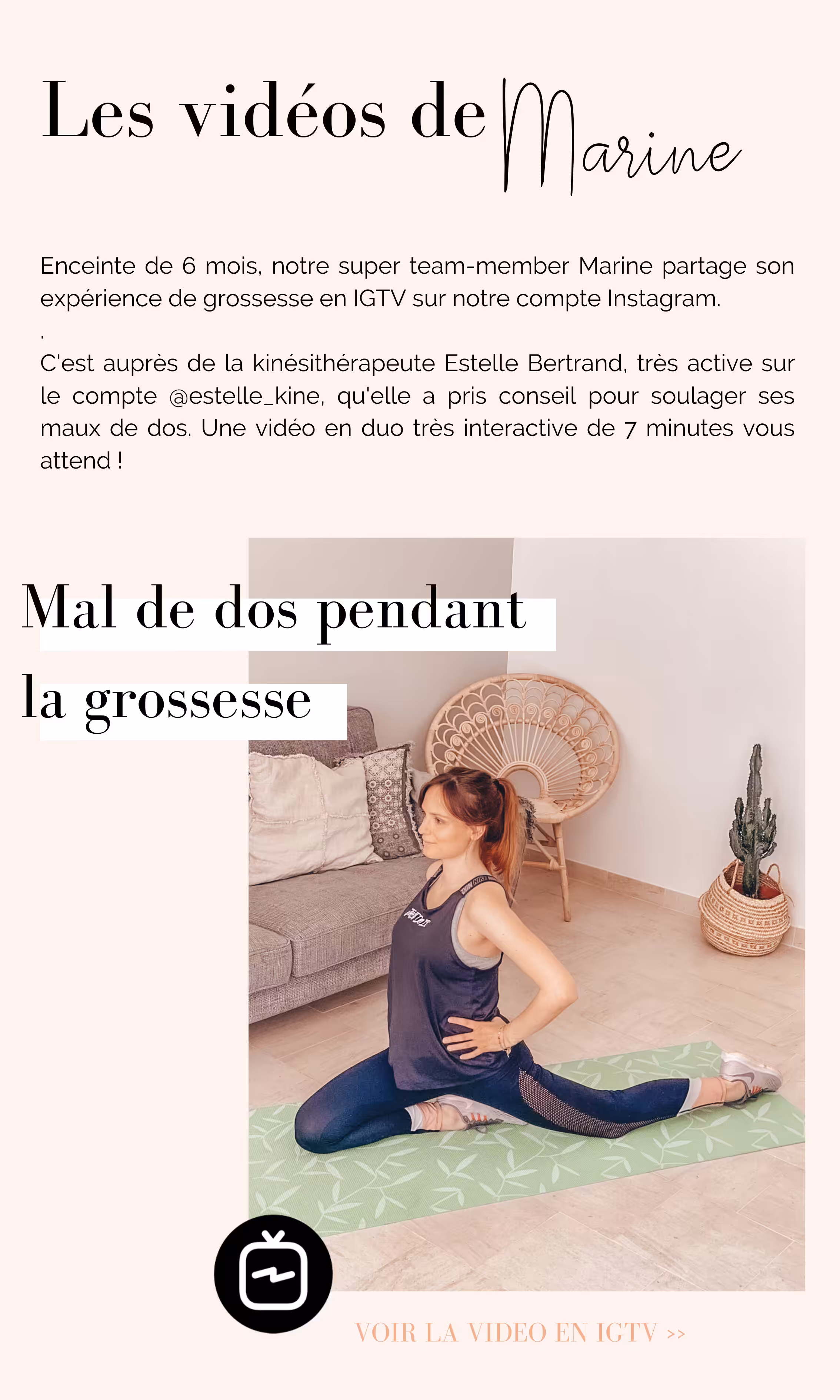 - Lucile Woodward : des vidéos thématiques de la coach, maman de deux enfants, pour débuter le yoga, remodeler son ventre, limiter les grignotages..et plus récemment sur son compte insta pour faire du sport avec son enfant