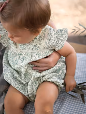 Pour les garçons d’honneur, des chemises en tissu avec des motifs Liberty assortis à des pantalons chino en coton dans un coloris beige ou un bermuda en lin couleur vert menthe à l’eau se compléteront à merveille. La touche de liberty peut aussi être apportée de manière subtile et coordonnée via un nœud papillon à motif. Cette collection apporte une fraîcheur joyeuse à toute cérémonie, célébrant la beauté de la nature et de l’enfance.