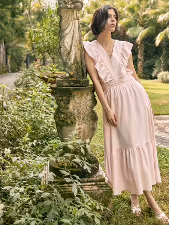Pour une ambiance bohème et poétique, misez sur des tenues légères et fluides dans des tons doux et naturels. Ce sont des tenues très plébiscitées pour des mariages preppy ou encore des célébrations de la future maman telles qu’une blessingway ou encore un gender reveal. Des moments de rassemblements entre proches où l’esprit bohème est très fort.